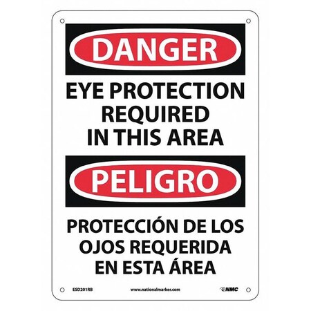 NMC ESD201RB Bilingual OSHA Sign, Legend "DANGER - EYE PROTECTION REQUIRED IN THIS AREA", 10" Length x 14" Height, Rigid Plastic, Black/Red on White