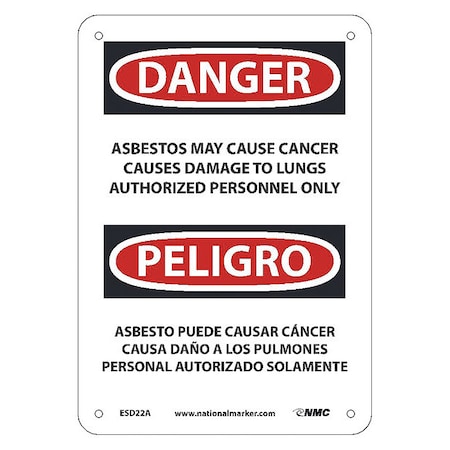 NMC ESD22A National Marker PELIGRO Asbestos Sign - May Cause Cancer Causes Damage to Lungs Authorized Personnel Only, 7 Inches x 10Inches, 040 Alum