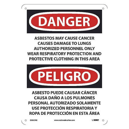 ESD23RB National Marker PELIGRO Asbestos Sign - May Cause Cancer Causes 10 Inches x 14 Inches, Rigid Plastic