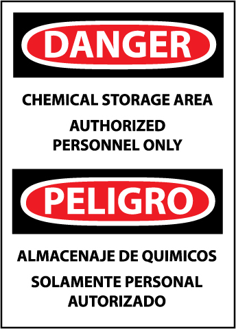 - Header "DANGER" and Legend "CHEMICAL STORAGE AREA AUTHORIZED PERSONNEL ONLY"