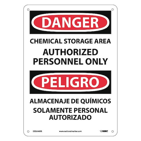 NMC ESD240RB Bilingual OSHA Sign, Legend "DANGER - CHEMICAL STORAGE AREA AUTHORIZED PERSONNEL ONLY", 10" Length x 14" Height, Rigid Plastic, Black/Red on White