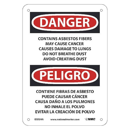 ESD24A National Marker PELIGRO Sign - Contains Asbestos Fibers May Cause Cancer Causes Damage to Lungs, 7 Inches x 10Inches , 040 ALUM