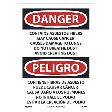 NMC ESD24PB National Marker Label, Danger Contains Asbestos Fibers May Cause Cancer Causes Damage to Lungs Do Not Breathe Dust Avoid Creating Dust, 10 Inches x 14 Inches, Ps Vinyl