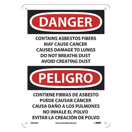 ESD24RB National Marker Danger Sign , Contains Asbestos Fibers May Cause Cancer Causes Damage to Lungs , 10 Inches x 14 Inches, Rigid Plastic