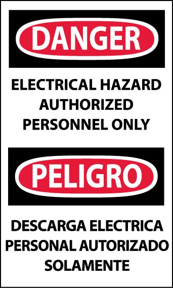 - Header "DANGER" and Legend "ELECTRICAL HAZARD AUTHORIZED PERSONNEL ONLY"