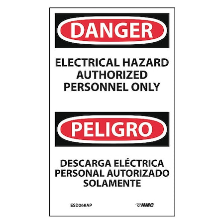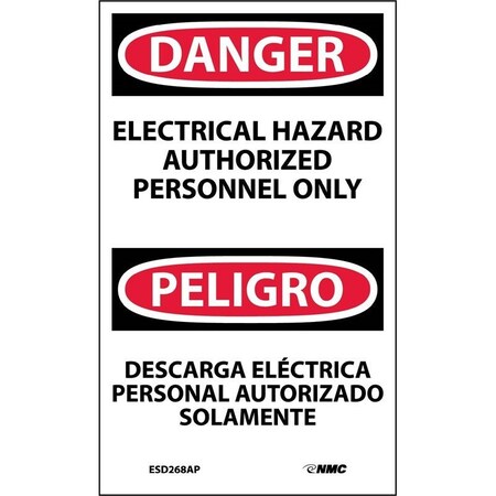 NMC ESD268AP Bilingual OSHA Sign, Legend "DANGER - ELECTRICAL HAZARD AUTHORIZED PERSONNEL ONLY", 3" Length x 5" Height, Pressure Sensitive Vinyl, Black/Red on White (Pack of 5)