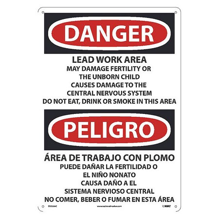 OSHA Sign ESD26. Legend: Danger Peligro Lead Work Area May Damage Fertility Or The Unborn Child Causes Damage To The Central Nervous System Do Not Eat, Drink Or Smoke In This Area (bilingual)