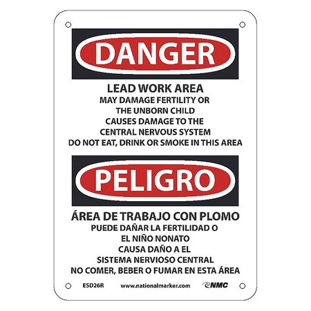 NMC ESD26R National Marker Danger Sign -PELIGRO Lead Work Area, 10 Inches x 7 Inches, Rigid Plastic