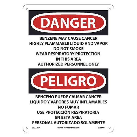 NMC ESD27RB National Marker Danger Sign -PELIGRO Benzene (Bilingual), 14 Inches x 10 Inches, Rigid Plastic