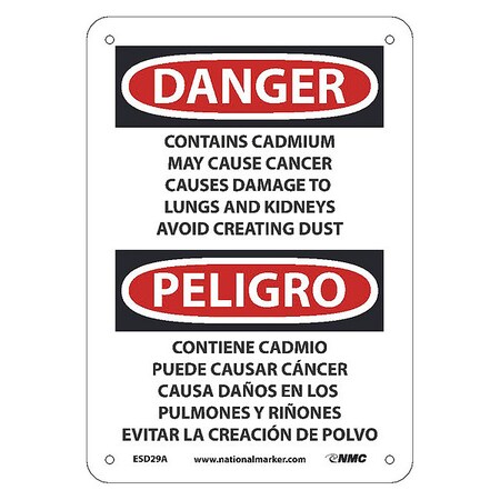 OSHA Sign ESD29. Legend: Danger Peligro Contains Cadmium May Cause Cancer Causes Damage To Lungs and Kidneys Avoid Creating Dust (bilingual)