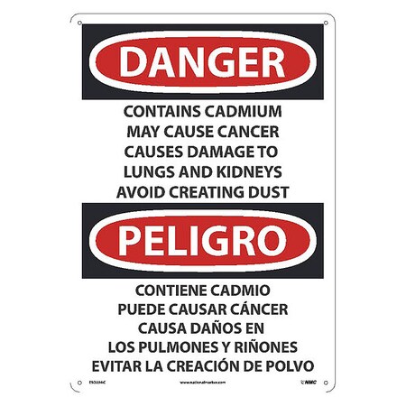 OSHA Sign ESD29. Legend: Danger Peligro Contains Cadmium May Cause Cancer Causes Damage To Lungs and Kidneys Avoid Creating Dust (bilingual)