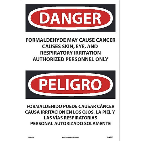 OSHA Sign ESD30. Legend: Danger Peligro Formaldehyde May Cause Cancer Causes Skin, Eye, and Respiratory Irritation Authorized Personnel Only (bilingual)