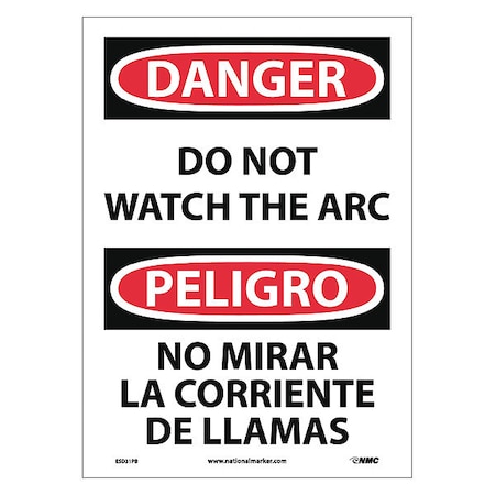 NMC ESD31PB Bilingual OSHA Sign, Legend "DANGER - DO NOT WATCH THE ARC", 10" Length x 14" Height, Pressure Sensitive Vinyl, Black/Red on White