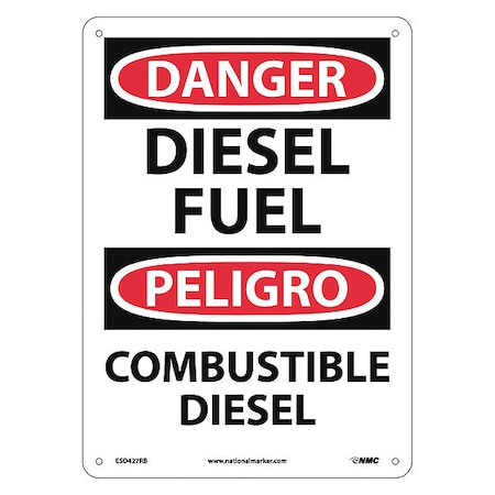 NMC ESD427RB Bilingual OSHA Sign, Legend "DANGER - DIESEL FUEL", 10" Length x 14" Height, Rigid Plastic, Black/Red on White