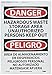 - Header "DANGER" and Legend "HAZARDOUS WASTE STORAGE AREA UNAUTHORIZED PERSONS KEEP OUT"