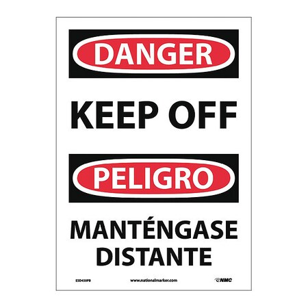 NMC ESD450PB Bilingual OSHA Sign, Legend "DANGER - KEEP OFF", 10" Length x 14" Height, Pressure Sensitive Vinyl, Black/Red on White