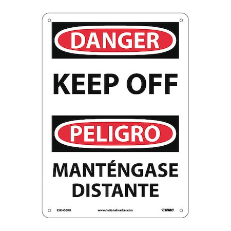 NMC ESD450RB Bilingual OSHA Sign, Legend "DANGER - KEEP OFF", 10" Length x 14" Height, Rigid Plastic, Black/Red on White