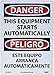 - Header "DANGER" and Legend "THIS EQUIPMENT STARTS AUTOMATICALLY"