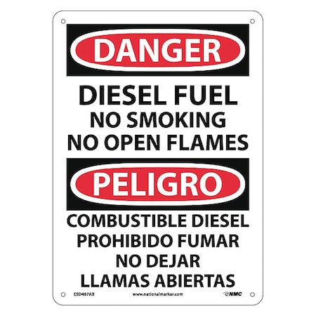 NMC ESD467AB Bilingual OSHA Sign, Legend "DANGER - DIESEL FUEL NO SMOKING NO OPEN FLAMES", 10" Length x 14" Height, 0.040 Aluminum, Black/Red on White