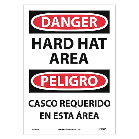NMC ESD46PB Bilingual OSHA Sign, Legend "DANGER - HARD HAT AREA", 10" Length x 14" Height, Pressure Sensitive Vinyl, Black/Red on White