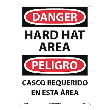 NMC ESD46RC Bilingual OSHA Sign, Legend "DANGER - HARD HAT AREA", 14" Length x 20" Height, Rigid Plastic, Black/Red on White