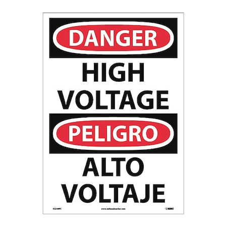 NMC ESD49PC Bilingual OSHA Sign, Legend "DANGER - HIGH VOLTAGE", 14" Length x 20" Height, Pressure Sensitive Vinyl, Black/Red on White