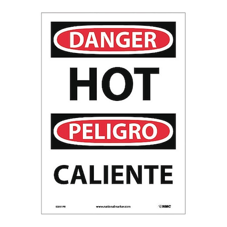 NMC ESD51PB Bilingual OSHA Sign, Legend "DANGER - HOT", 10" Length x 14" Height, Pressure Sensitive Vinyl, Black/Red on White