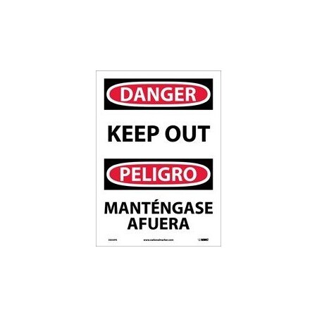 NMC ESD59PB Bilingual OSHA Sign, Legend "DANGER - KEEP OUT", 10" Length x 14" Height, Pressure Sensitive Vinyl, Black/Red on White