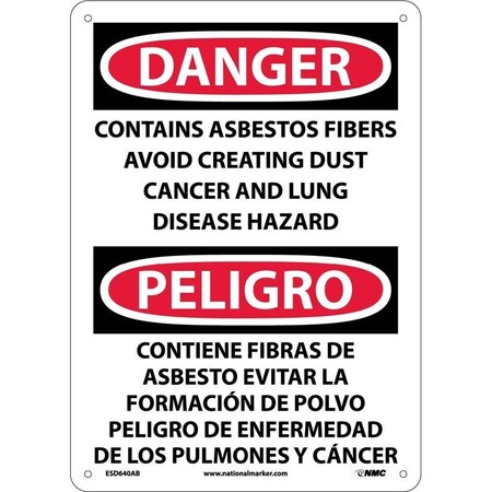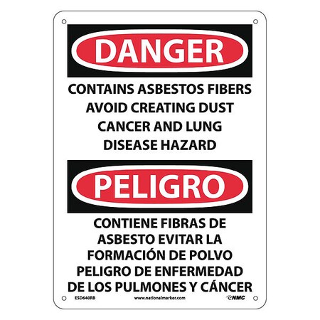 NMC ESD640RB Bilingual OSHA Sign, Legend "DANGER - CONTAINS ASBESTOS FIBERS AVOID CREATING DUST CANCER AND LUNG DISEASE HAZARD", 10" Length x 14" Height, Rigid Plastic, Black/Red on White