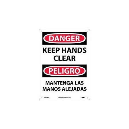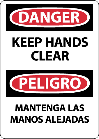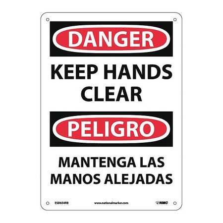 NMC ESD654RB Bilingual OSHA Sign, Legend "DANGER - KEEP HANDS CLEAR", 10" Length x 14" Height, Rigid Plastic, Black/Red on White