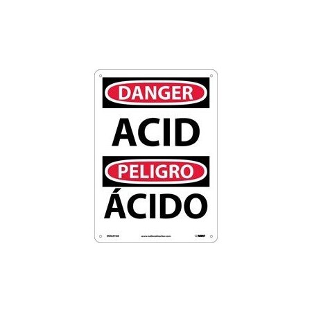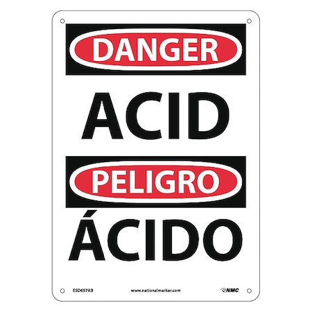 NMC ESD657AB Bilingual OSHA Sign, Legend "DANGER - ACID", 10" Length x 14" Height, 0.040 Aluminum, Black/Red on White