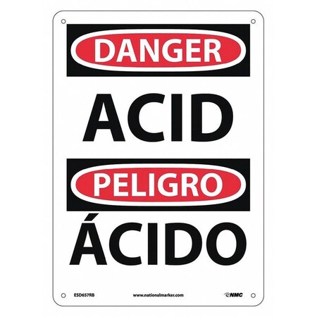 NMC ESD657RB Bilingual OSHA Sign, Legend "DANGER - ACID", 10" Length x 14" Height, Rigid Plastic, Black/Red on White