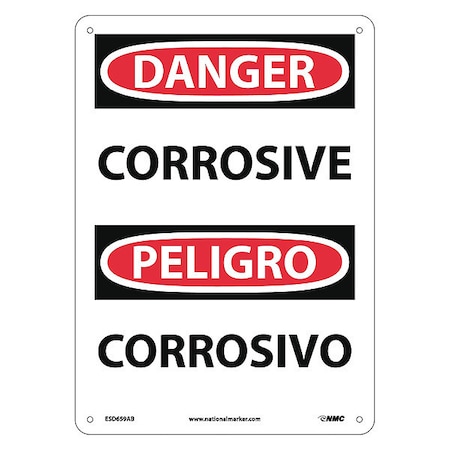 NMC ESD659AB Bilingual OSHA Sign, Legend "DANGER - CORROSIVE", 10" Length x 14" Height, 0.040 Aluminum, Black/Red on White