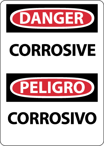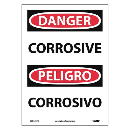 NMC ESD659PB Bilingual OSHA Sign, Legend "DANGER - CORROSIVE", 10" Length x 14" Height, Pressure Sensitive Vinyl, Black/Red on White