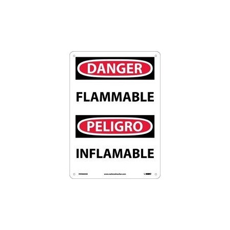 NMC ESD660AB Bilingual OSHA Sign, Legend "DANGER - FLAMMABLE", 10" Length x 14" Height, 0.040 Aluminum, Black/Red on White