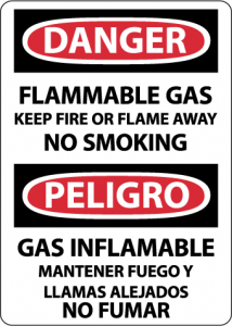 - Header "DANGER" and Legend "FLAMMABLE GAS KEEP FIRE OR FLAME AWAY NO SMOKING"