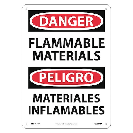 NMC ESD664RB Bilingual OSHA Sign, Legend "DANGER - FLAMMABLE MATERIALS", 10" Length x 14" Height, Rigid Plastic, Black/Red on White