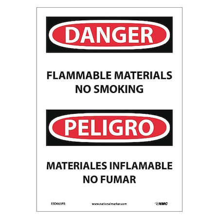 NMC ESD665PB Bilingual OSHA Sign, Legend "DANGER - FLAMMABLE MATERIAL NO SMOKING", 10" Length x 14" Height, Pressure Sensitive Vinyl, Black/Red on White