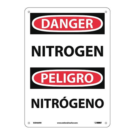 NMC ESD666RB Bilingual OSHA Sign, Legend "DANGER - NITROGEN", 10" Length x 14" Height, Rigid Plastic, Black/Red on White
