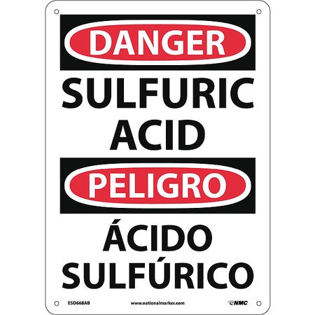 NMC ESD668AB Bilingual OSHA Sign, Legend "DANGER - SULFURIC ACID", 10" Length x 14" Height, 0.040 Aluminum, Black/Red on White