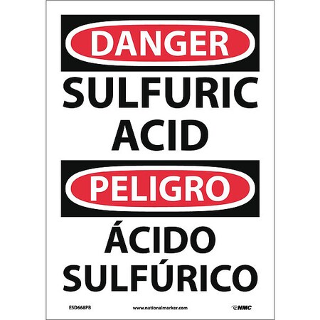NMC ESD668PB Bilingual OSHA Sign, Legend "DANGER - SULFURIC ACID", 10" Length x 14" Height, Pressure Sensitive Adhesive Vinyl, Black/Red on White
