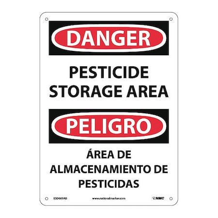 NMC ESD669AB Bilingual OSHA Sign, Legend "DANGER - PESTICIDE STORAGE AREA", 10" Length x 14" Height, 0.040 Aluminum, Black/Red on White