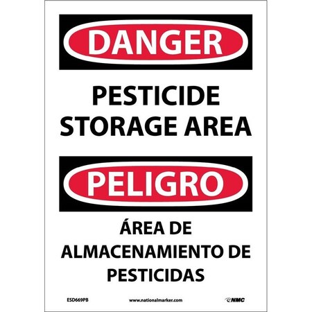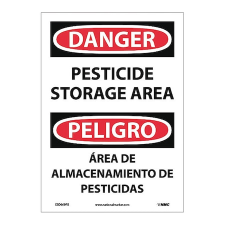 NMC ESD669PB Bilingual OSHA Sign, Legend "DANGER - PESTICIDE STORAGE AREA", 10" Length x 14" Height, Pressure Sensitive Adhesive Vinyl, Black/Red on White