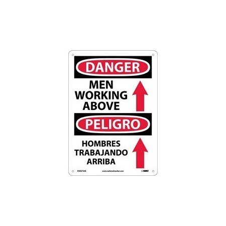 NMC ESD674AB Bilingual OSHA Sign, Legend "DANGER - MEN WORKING ABOVE" with Graphic, 10" Length x 14" Height, 0.040 Aluminum, Black/Red on White