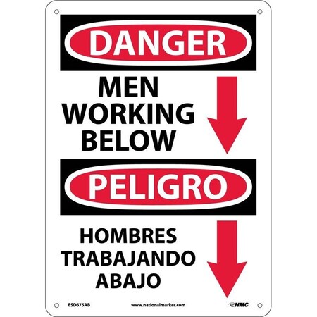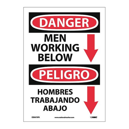 NMC ESD675PB Bilingual OSHA Sign, Legend "DANGER - MEN WORKING BELOW" with Graphic, 10" Length x 14" Height, Pressure Sensitive Adhesive Vinyl, Black/Red on White