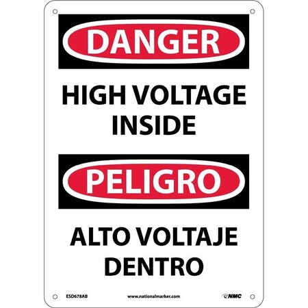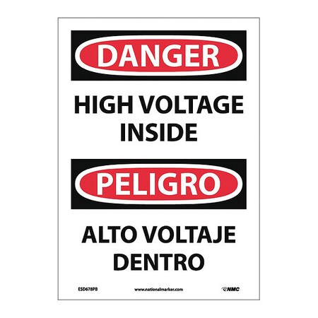 NMC ESD678PB Bilingual OSHA Sign, Legend "DANGER - HIGH VOLTAGE INSIDE", 10" Length x 14" Height, Pressure Sensitive Adhesive Vinyl, Black/Red on White