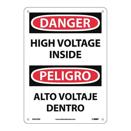 NMC ESD678RB Bilingual OSHA Sign, Legend "DANGER - HIGH VOLTAGE INSIDE", 10" Length x 14" Height, Rigid Plastic, Black/Red on White