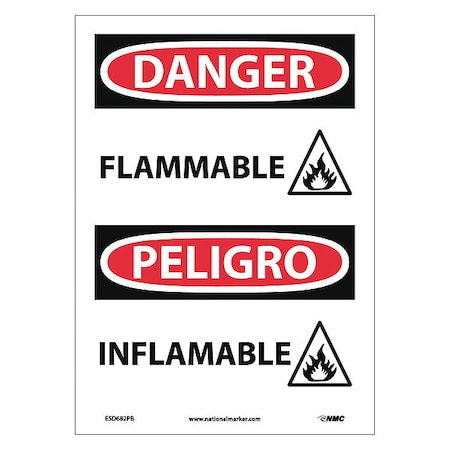 NMC ESD682PB Bilingual OSHA Sign, Legend "DANGER - FLAMMABLE" with Graphic, 10" Length x 14" Height, Pressure Sensitive Adhesive Vinyl, Black/Red on White