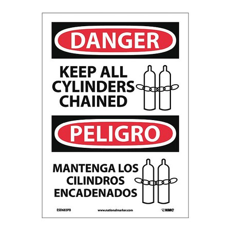 NMC ESD683PB Bilingual OSHA Sign, Legend "DANGER - KEEP ALL CYLINDERS CHAINED" with Graphic, 10" Length x 14" Height, Pressure Sensitive Adhesive Vinyl, Black/Red on White