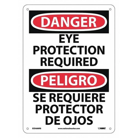 NMC ESD688RB Bilingual OSHA Sign, Legend "DANGER - EYE PROTECTION REQUIRED", 10" Length x 14" Height, Rigid Plastic, Black/Red on White